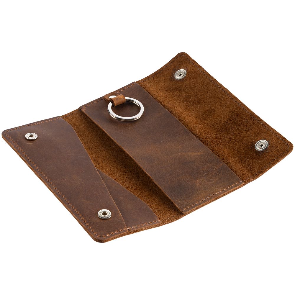 Внутри кольцо для крепления ключей длиной до 12 см. Застегивается на кнопки.