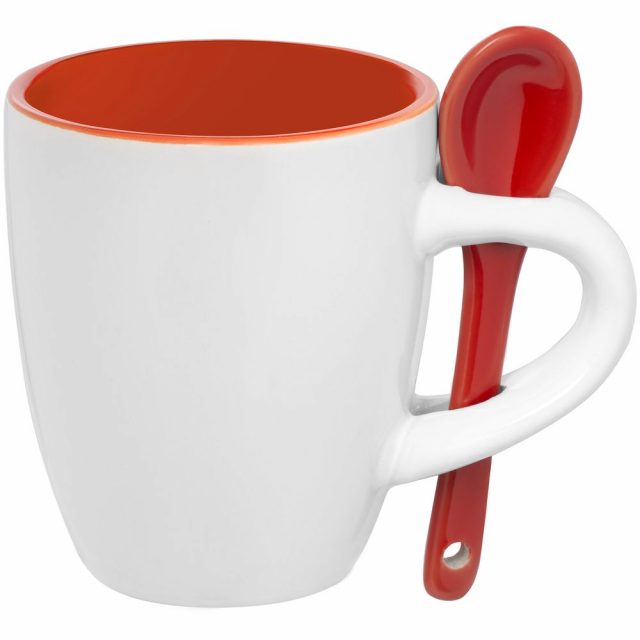 Кофейная кружка Pairy с ложкой, оранжевая с красной