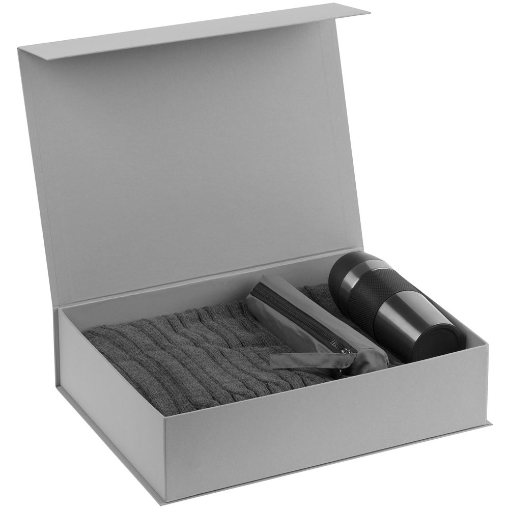 Коробка выполнена из переплетного картона, кашированного гладкой дизайнерской бумагой Malmero, с крышкой на магнитах.