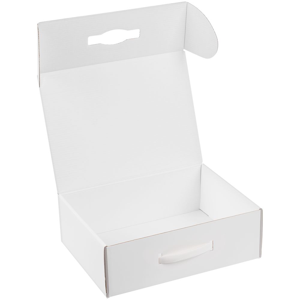 Самосборная коробка-шкатулка со вставной пластиковой ручкой.