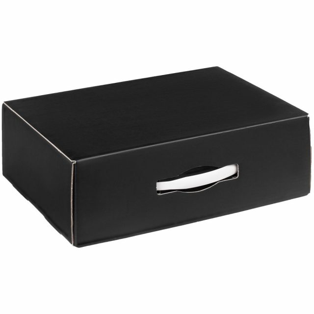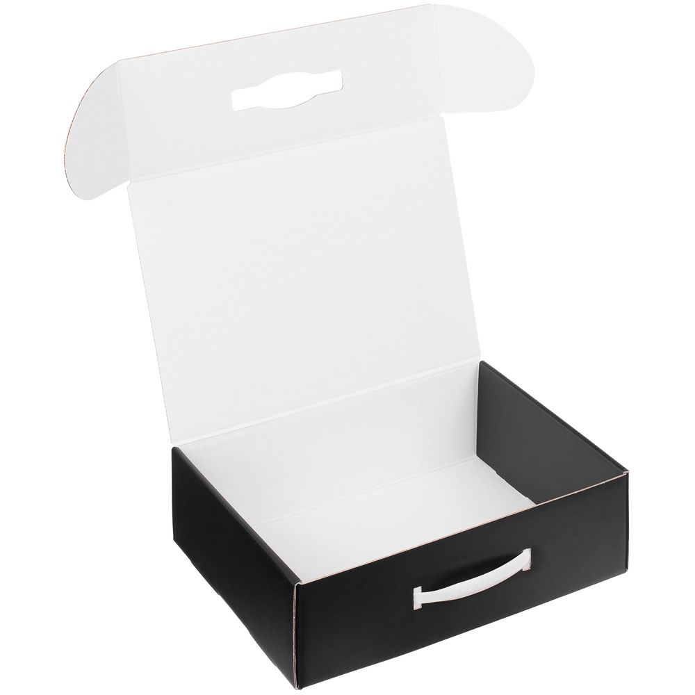 Самосборная коробка-шкатулка со вставной пластиковой ручкой.