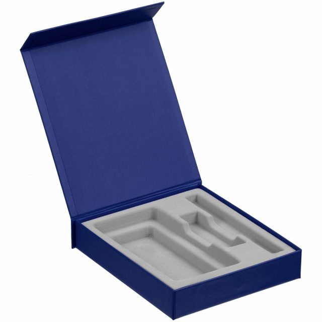 Подарочная коробка для аккумулятора 14,5х7,5х1,3 см, флешки 8,2х2,2х1,2 см и ручки 14,5х1,5х0,8 см с крышкой на магните и флокированным ложементом.