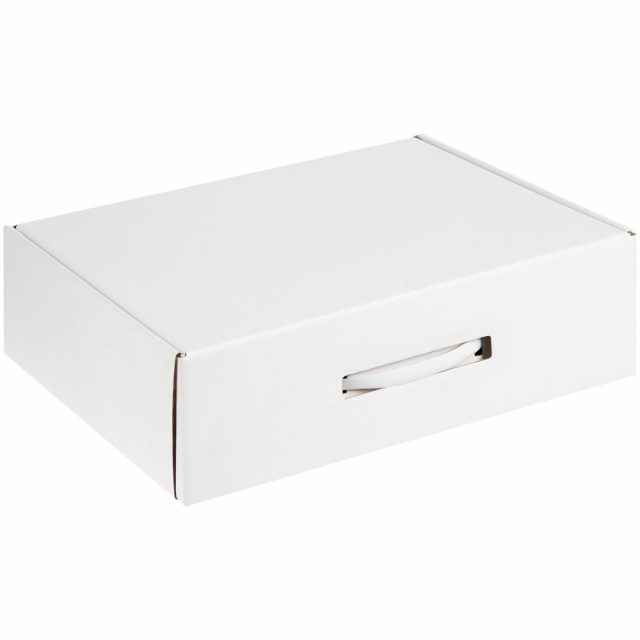 Самосборная коробка-шкатулка со вставной пластиковой ручкой.