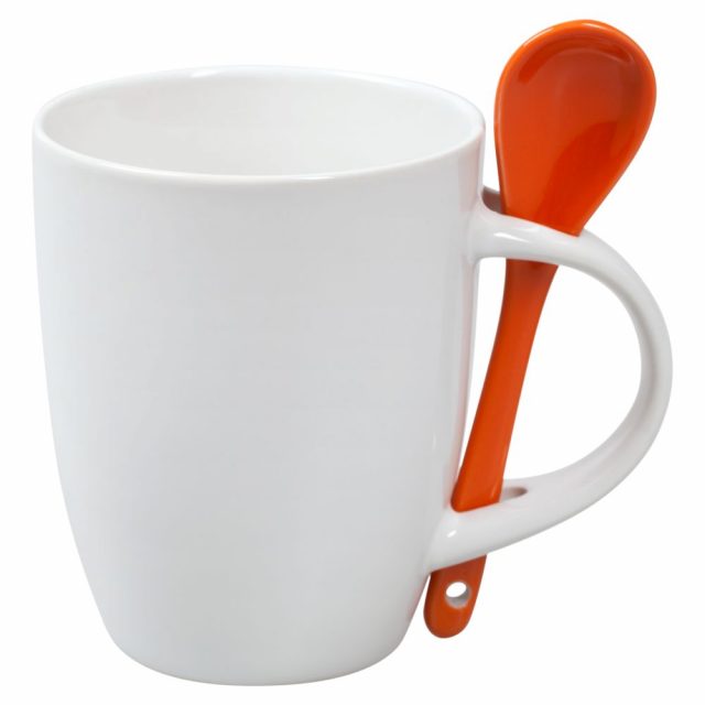 Кружка с ложкой Cheer Up, белая с оранжевой