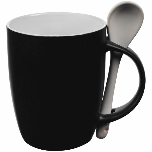 Кружка с ложкой Cheer Up, ver.2, черная
