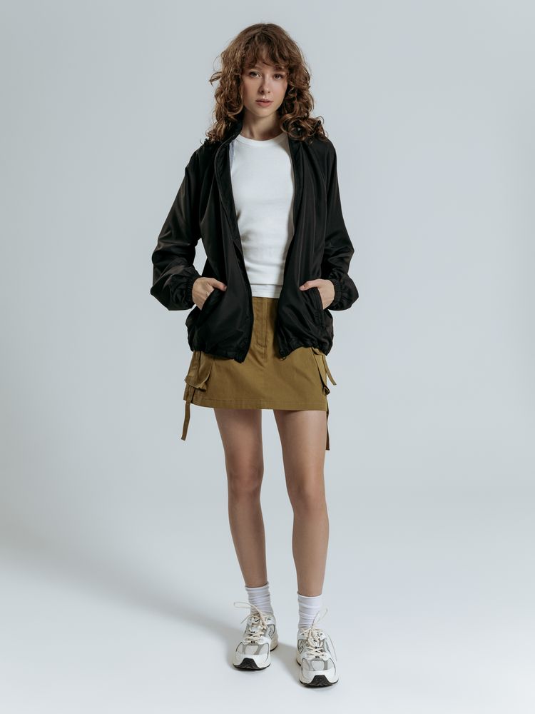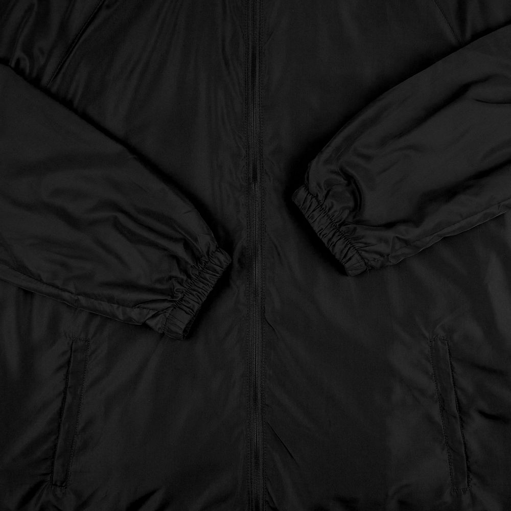 • Кулиска с эластичной резинкой по краю капюшона, по низу изделия и по горловине воротника изделия