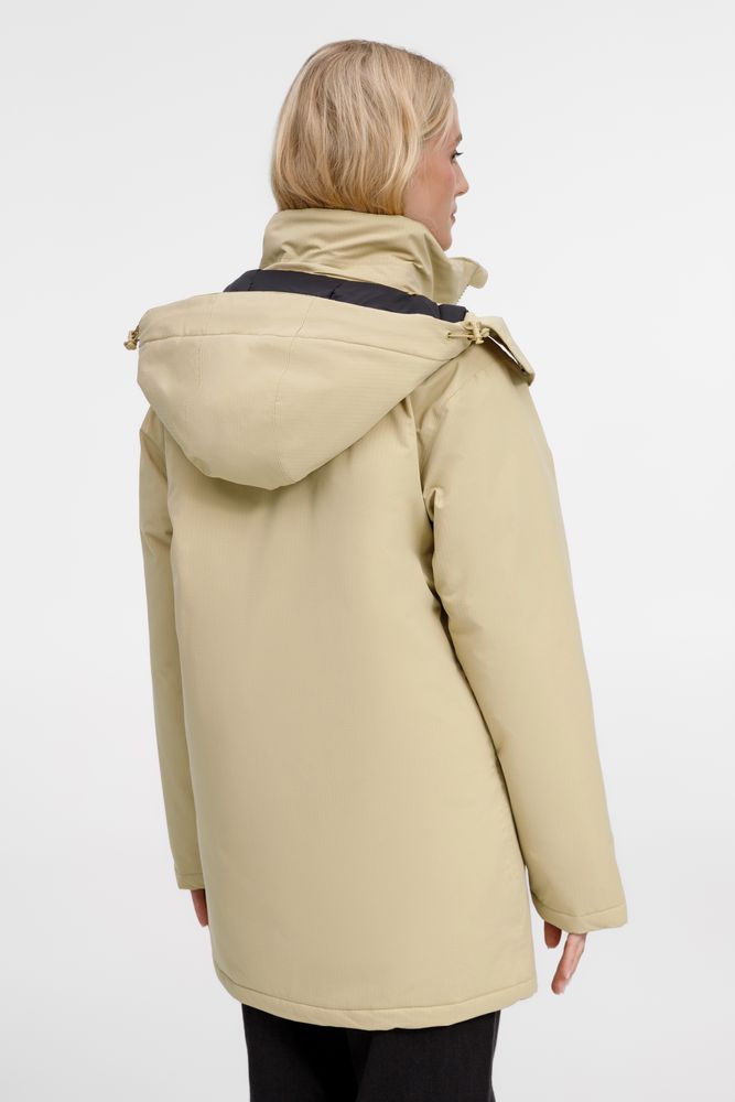 Благодаря утеплителю в этой парке будет комфортно при температуре до -15°C. Продуманные детали: отстегивающийся капюшон, воротник-стойка и манжеты на резинке, а также защитная «снежная юбка» как в профессиональных горнолыжных брендах, — обеспечивают дополнительную защиту от холода и ветра.