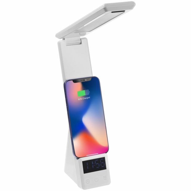Powerack — многофункциональное устройство, которое сочетает в себе функции настольной лампы, электронных часов с будильником, станции беспроводной и проводной зарядки устройств.