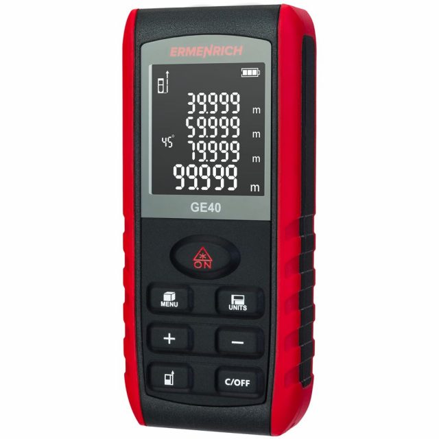 Ermenrich Reel GE40 — лазерная рулетка для самого широкого применения при измерении линейных размеров, площадей и объемов помещений, зданий и сооружений.