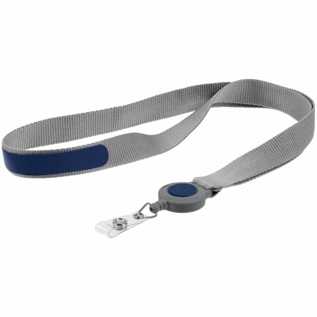 Лента для бейджа с ретрактором Devon, серая с синим