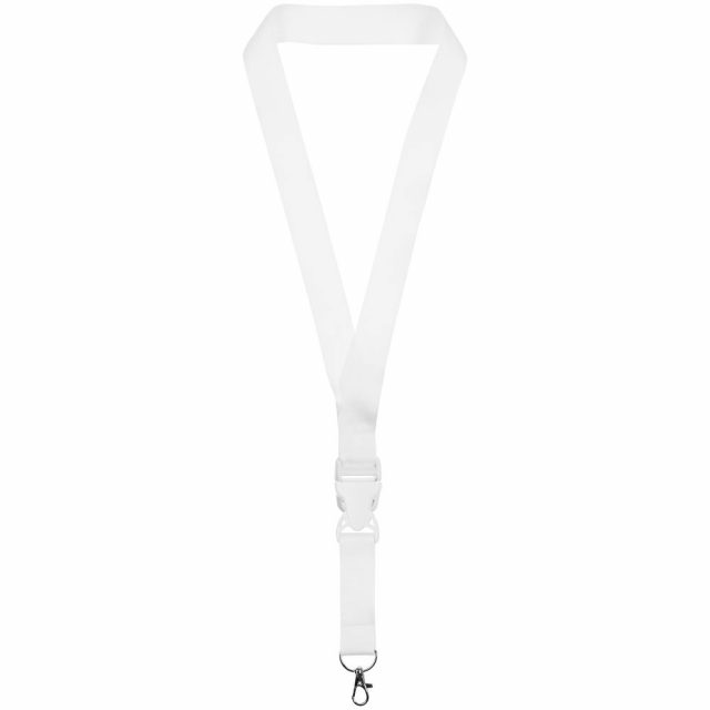 Лента для бейджа или пропуска с карабином и межъярусным замком. Такой замок позволит быстро отстегнуть часть ленты, чтобы приложить интерактивный бейдж или пропуск к считывателю, не снимая ленту через голову.