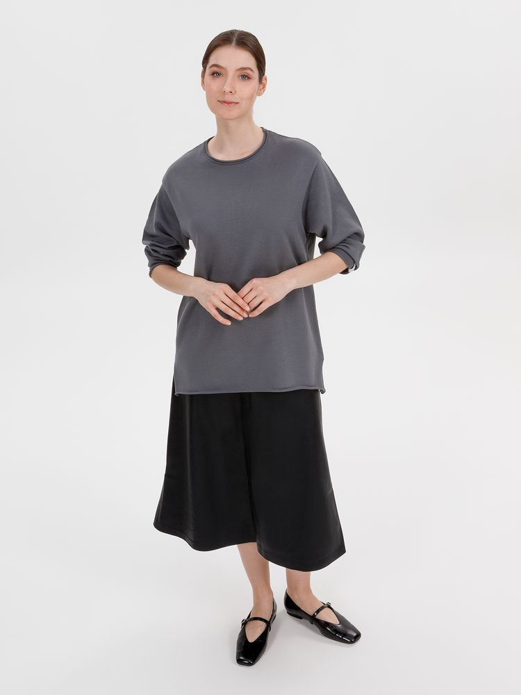 Лонгслив Fuori средней плотности с широким воротом, спущенной линией плеча и свободно подворачивающимися краями по низу, на рукавах и вороте, которые добавляют модели еще большей расслабленности. Прозрачная бирка с логотипом бренда на рукаве не нарушает минималистичности образа.