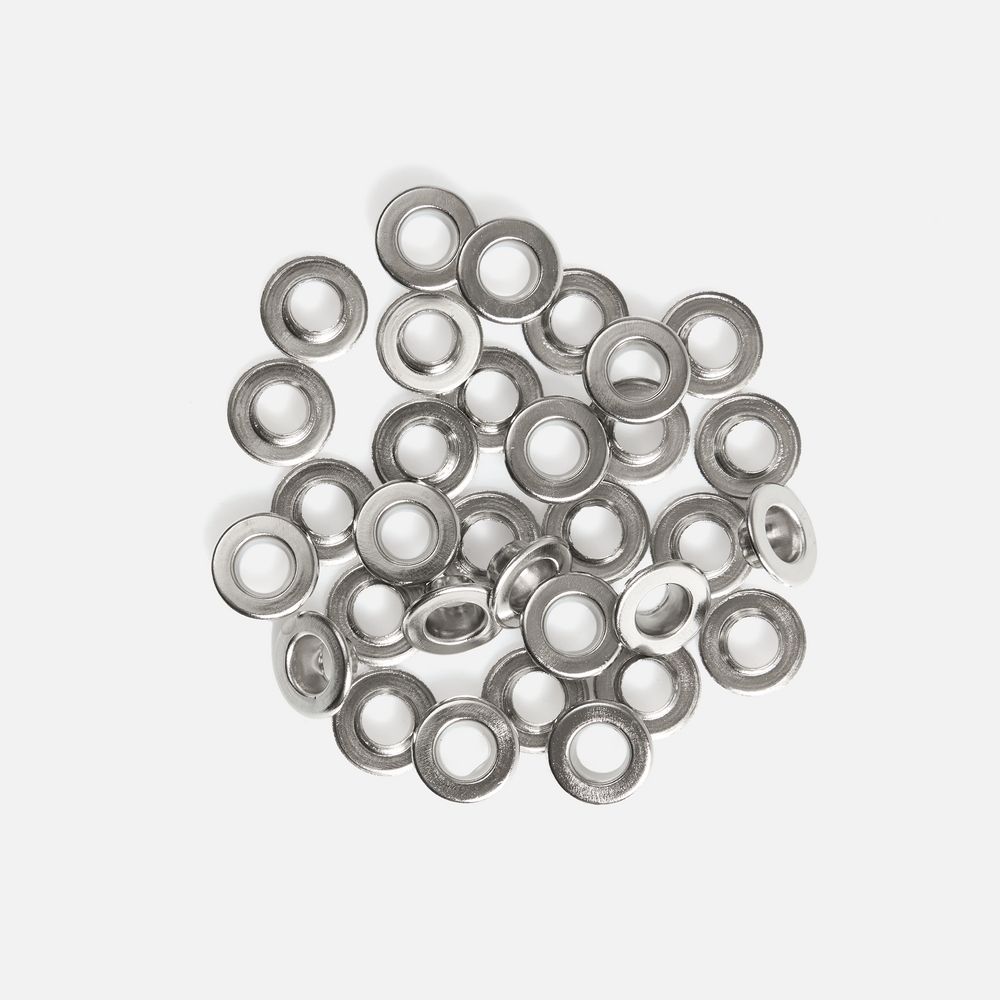 Не подходит для установки на трикотаж. Предназначен для укрепления краев отверстий, используемых для продевания стропы, шнурков, резинки. Легко послужит и элементом дизайна.