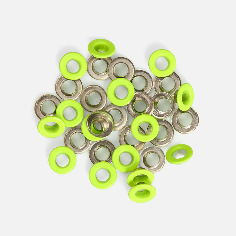 Не подходит для установки на трикотаж. Предназначен для укрепления краев отверстий, используемых для продевания стропы, шнурков, резинки. Легко послужит и элементом дизайна.