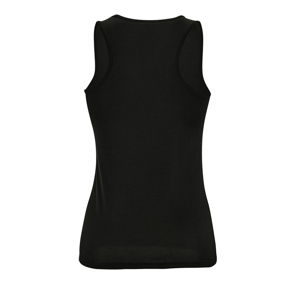 Майка приталенного кроя из спортивной сетки. Горловина и проймы обработаны бейкой.