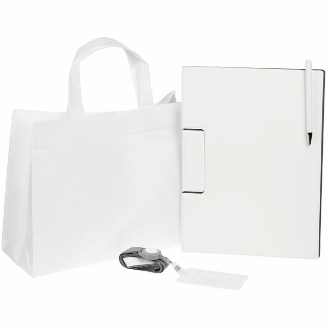 Лаконичный и строгий приветственный набор Devon Span содержит самое необходимое для нового сотрудника или участника профессионального мероприятия. Это папка-планшет и ручка — для комфортных записей и фиксации документов во время деловых переговоров или докладов, а также чехол для пропуска на ленте — для безопасности и идентификации — все в компактной легкой сумке.