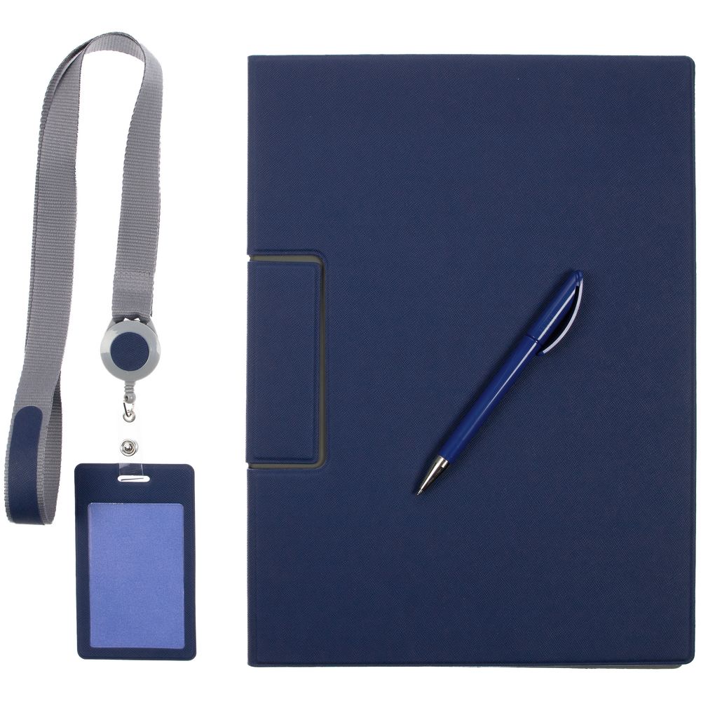 Лаконичный и строгий приветственный набор Devon Span содержит самое необходимое для нового сотрудника или участника профессионального мероприятия. Это папка-планшет и ручка — для комфортных записей и фиксации документов во время деловых переговоров или докладов, а также чехол для пропуска на ленте — для безопасности и идентификации — все в компактной легкой сумке.