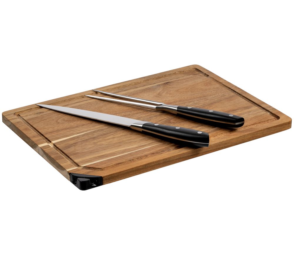Доска изготовлена из акации — твердого и прочного дерева, привлекающего внимание своей живописной, неповторимой текстурой. Отличительной особенностью доски является встроенная точилка для ножей, которой удобно пользоваться во время готовки.