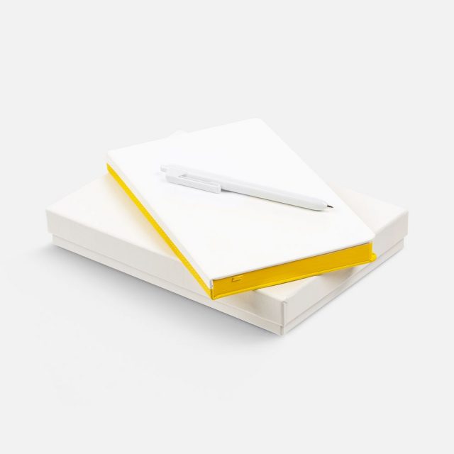 Недатированный двухцветный ежедневник с твердой обложкой из фактурного материала Canyon с ляссе и двухцветная ручка в тон.