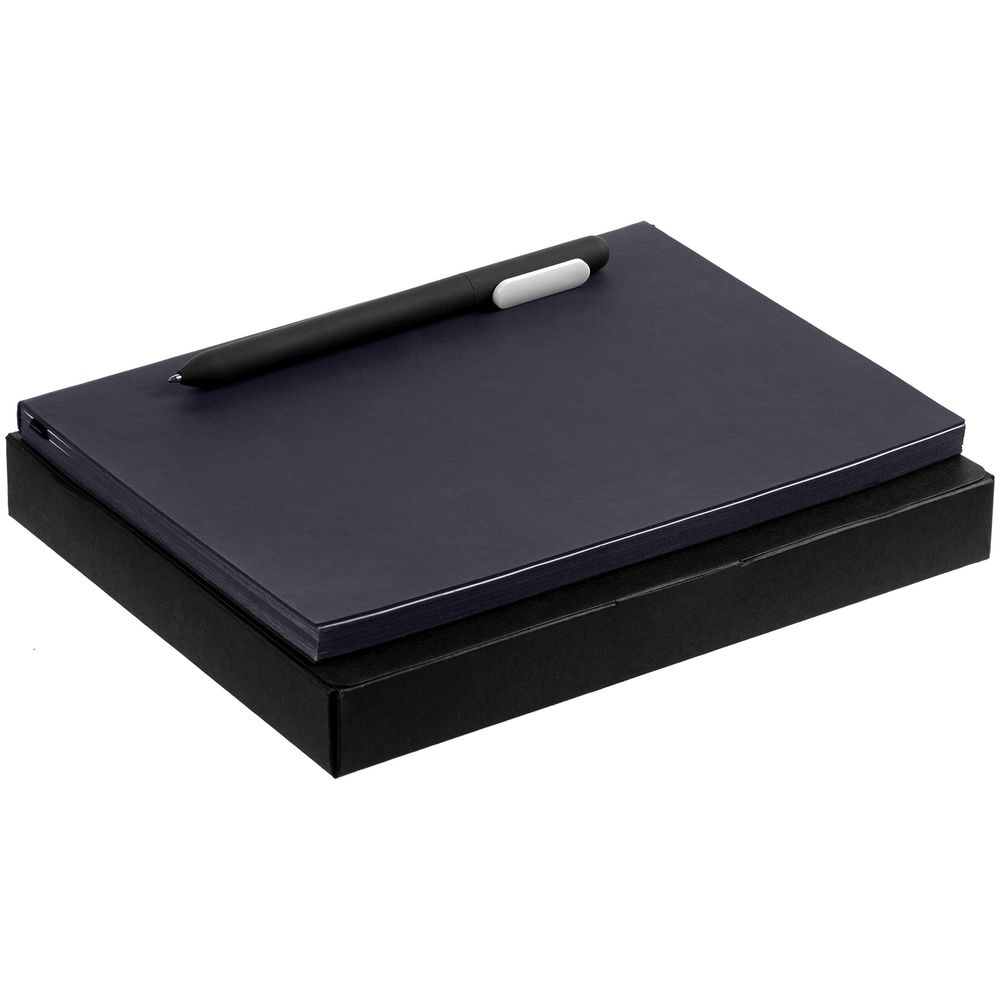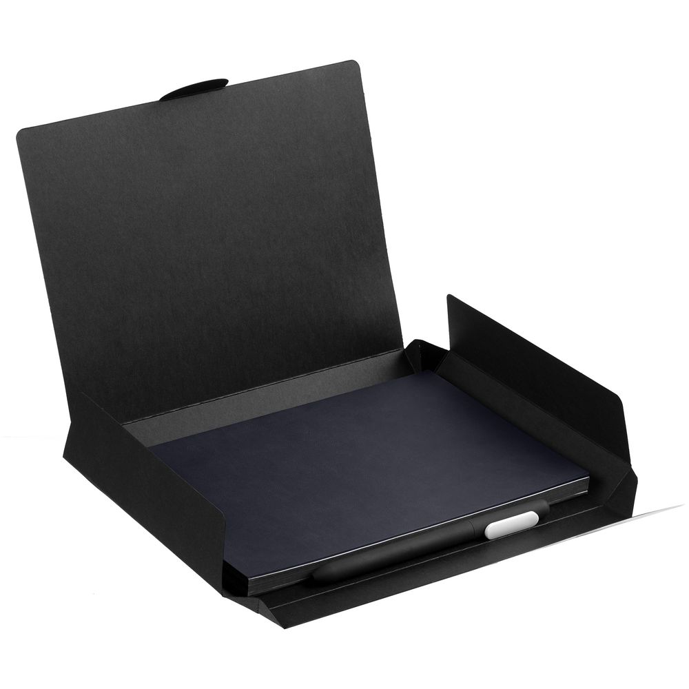 Компактный набор со стильным ежедневником в гибкой обложке с покрытием софт-тач и подходящей ручкой. Все составляющие сложены в самосборную коробку, которая придает набору законченность.