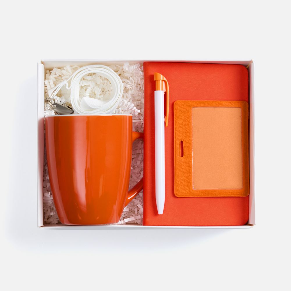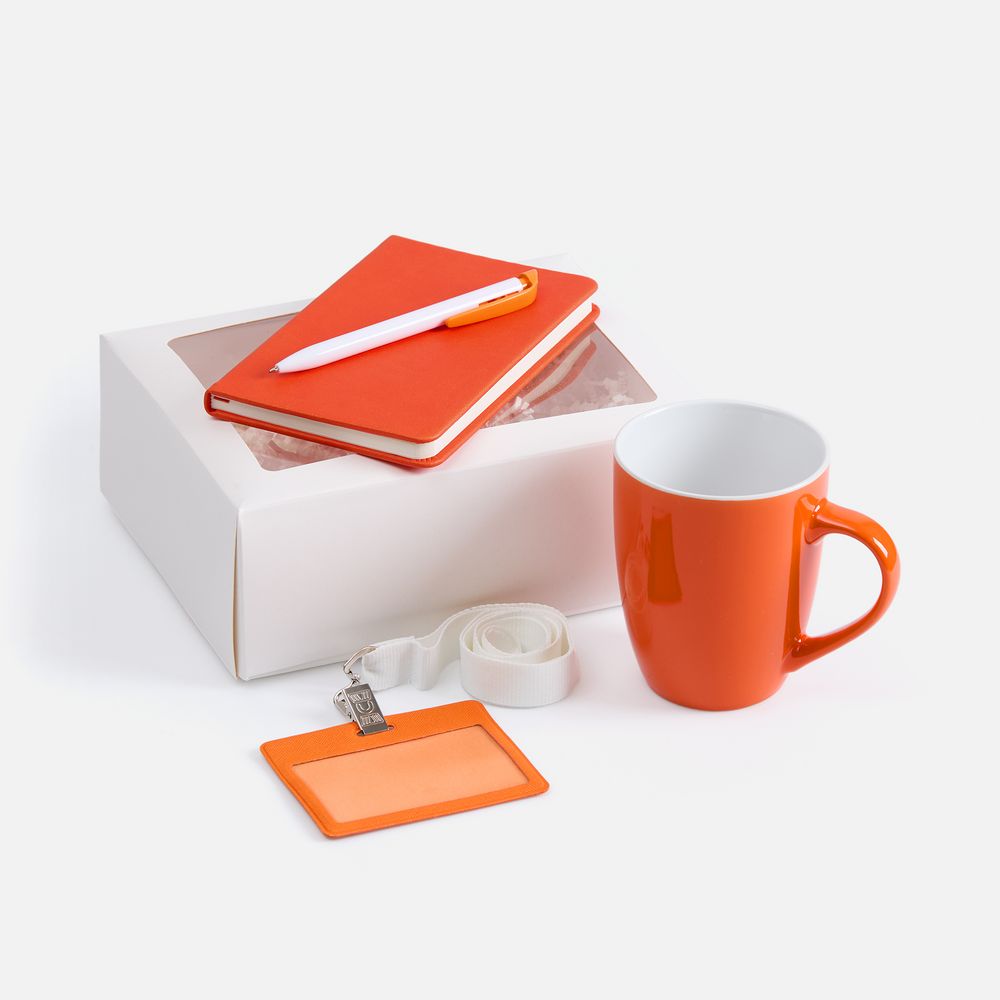 Лаконичный приветственный набор Hop In содержит все самое необходимое для успешной и быстрой адаптации нового сотрудника в команде. Это основные офисные принадлежности — блокнот и ручка — для подробной записи идей и планов; чехол для пропуска на ленте — для безопасности и идентификации; компактная кружка — для приятного перерыва в компании с новыми коллегами.