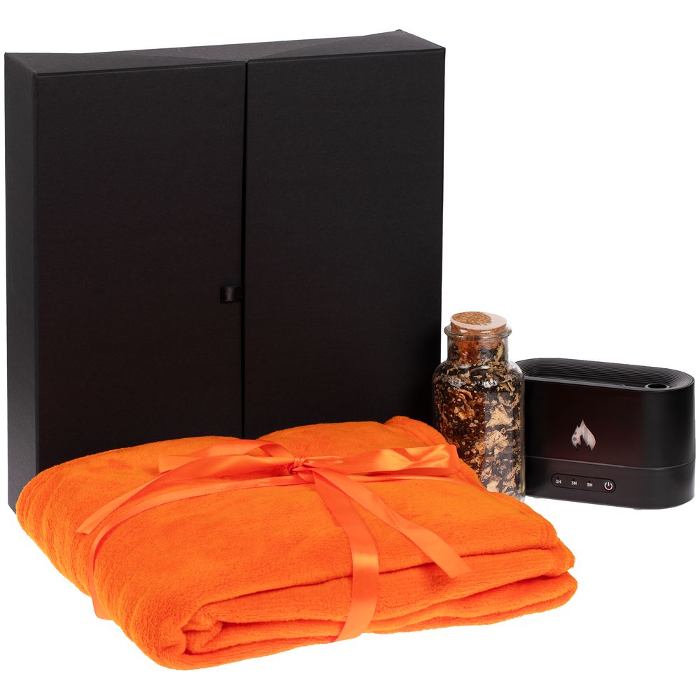 Мягкий флисовый плед, черный чай с медовыми гранулами, корицей и кусочками имбиря, а также увлажнитель воздуха с имитацией пламени — все самое необходимое для создания уюта в доме в подарочном наборе Housewarming.