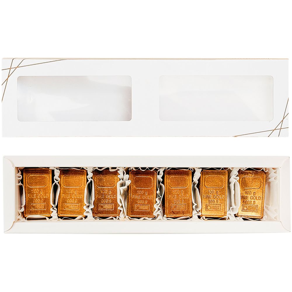 Каждая конфета — это миниатюрный золотой слиток, блестящий и манящий, как настоящее сокровище. Растопите его во рту и насладитесь неповторимым вкусом: мягкий молочный шоколад идеально дополняет пикантную сладость соленой карамели, создавая гармоничный и незабываемый вкус.