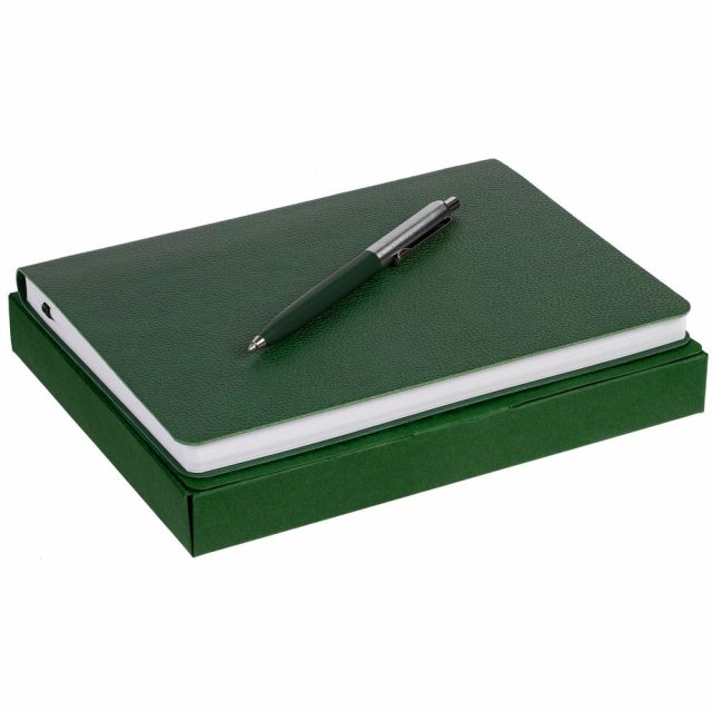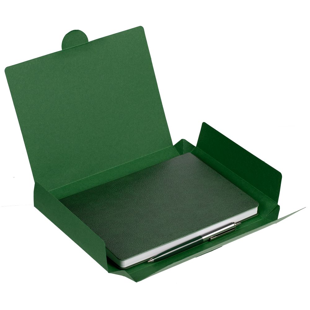 Недатированный ежедневник с гибкой обложкой из фактурного материала La Fite и металлическим шильдом на ляссе и ручка в тон, упакованные в подарочную коробку из дизайнерского картона.