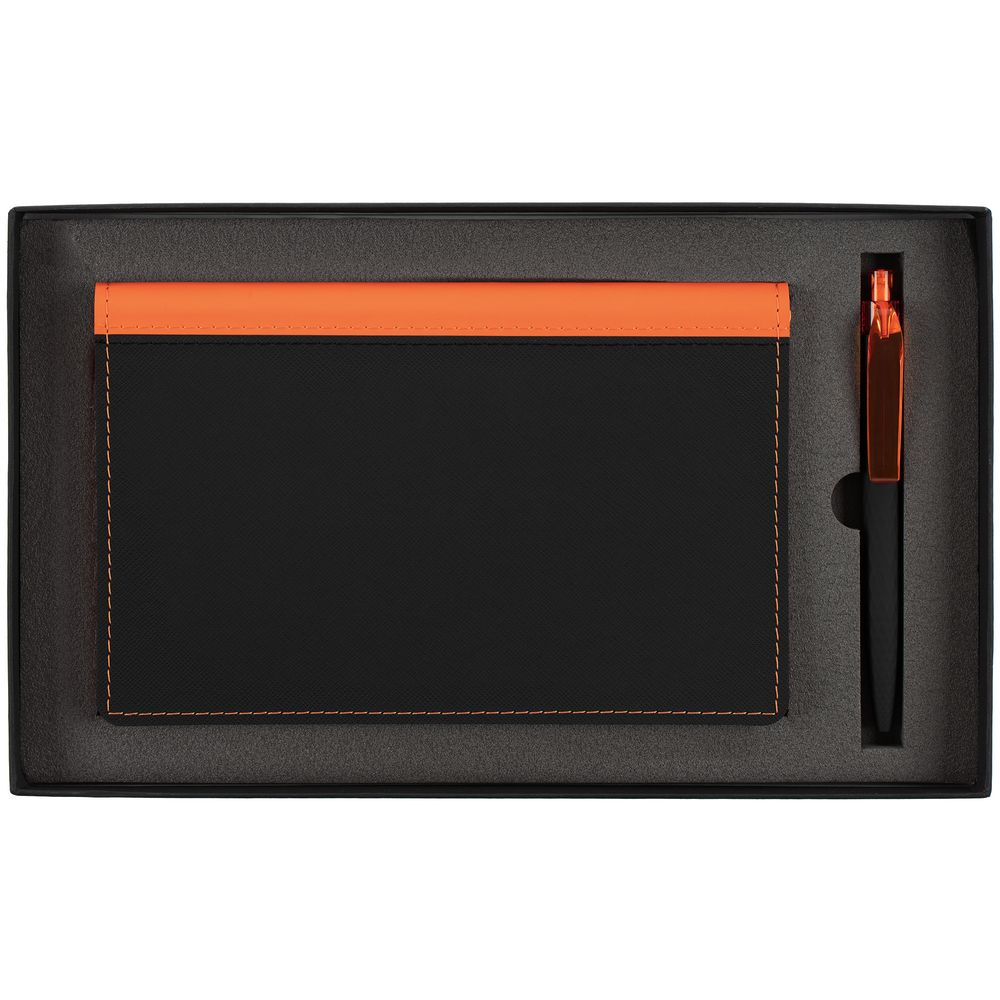 Стильный двухцветный ежедневник с гибкой обложкой и цветным обрезом, а также ручка в тон.