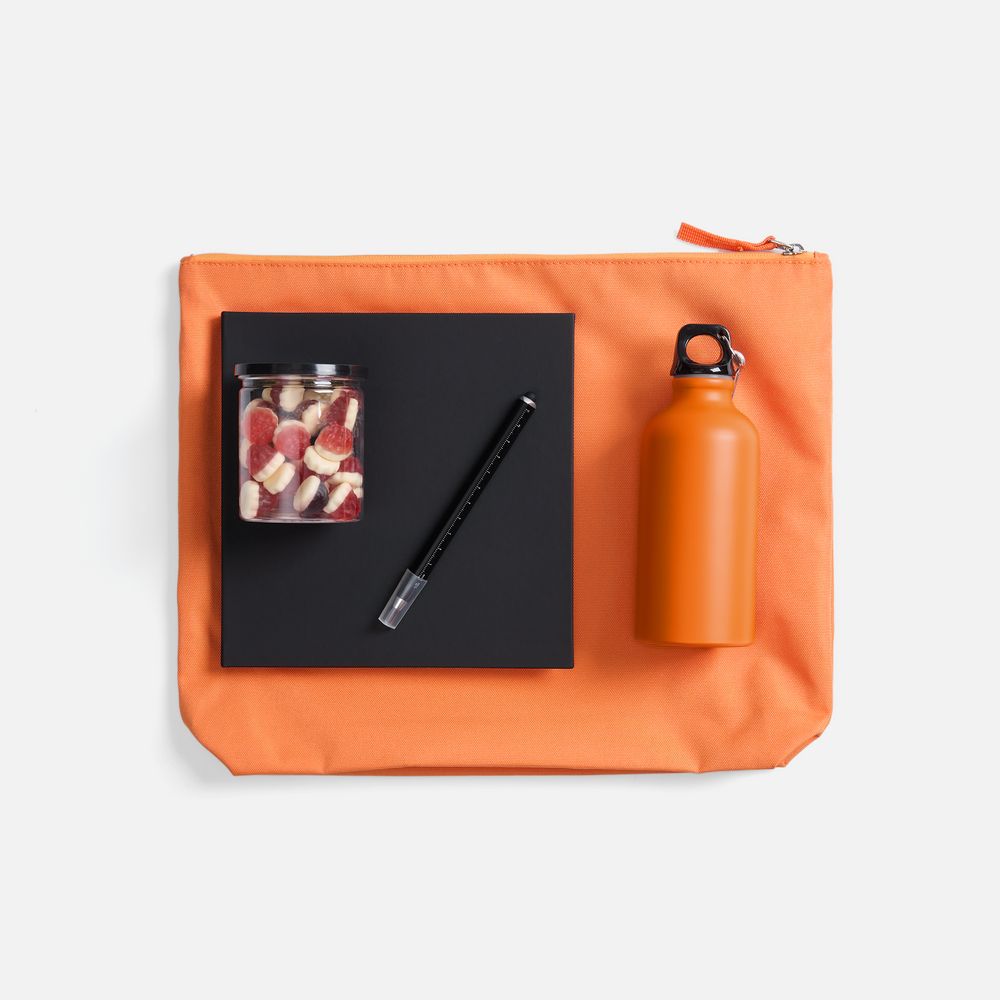 Для полного комфорта не обойтись без сладкого перекуса, бутылочки освежающей воды, а чтобы никто не похитил творческую идею — лучше все надежно скрыть в стильном шопере с непрозрачным органайзером.