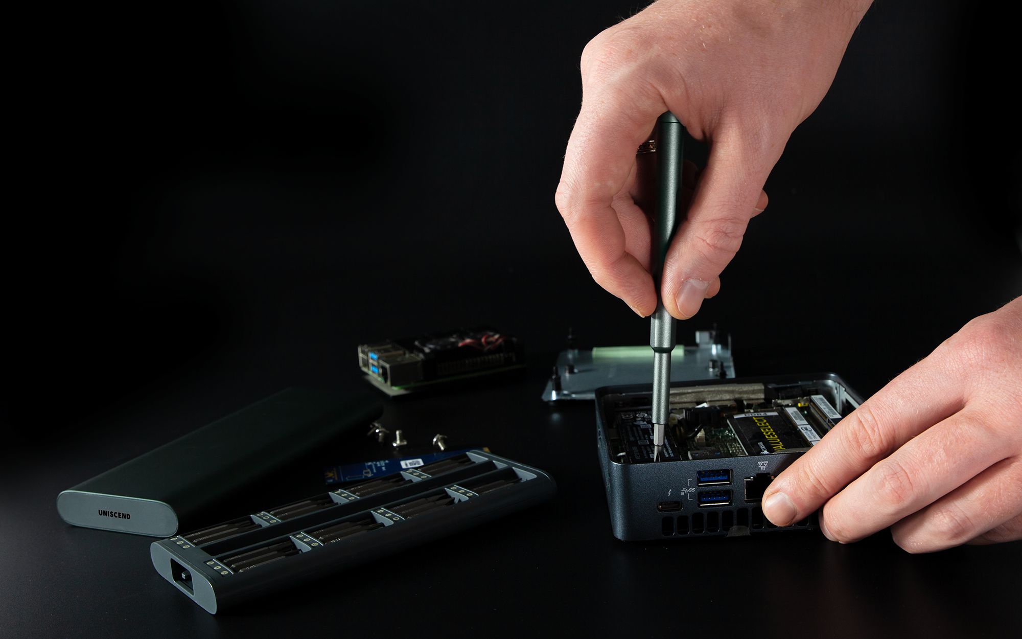 В набор бит для точных работ входят насадки, необходимые для ремонта смартфонов, планшетов, ноутбуков и ПК, включая iPhone, iPad, MacBook Air и MacBook Pro, а также игровые консоли и контроллеры от Nintendo, PlayStation или XBox.