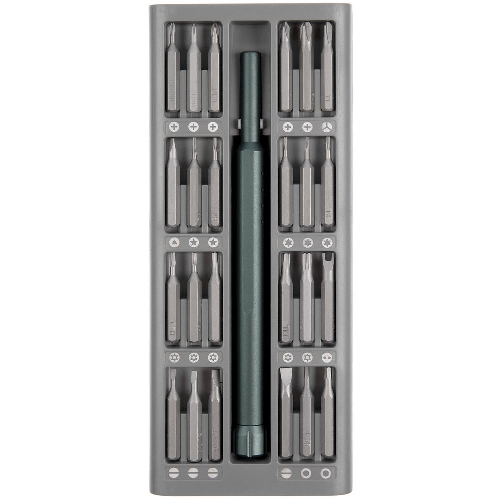 В комплекте магнитный держатель и 24 биты:
