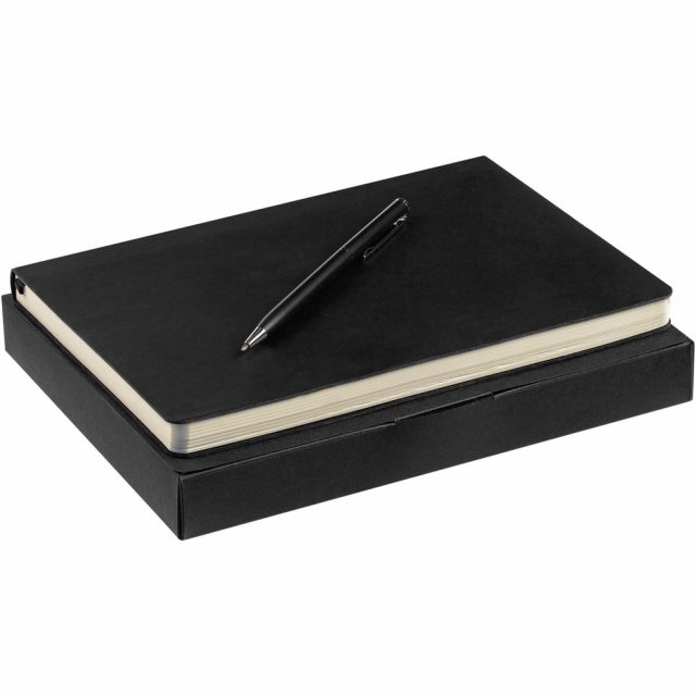 Недатированный ежедневник с гибкой обложкой из материала Latte с ляссе в цвет обложки, а также ручка в тон — в подарочной коробке из дизайнерского картона.