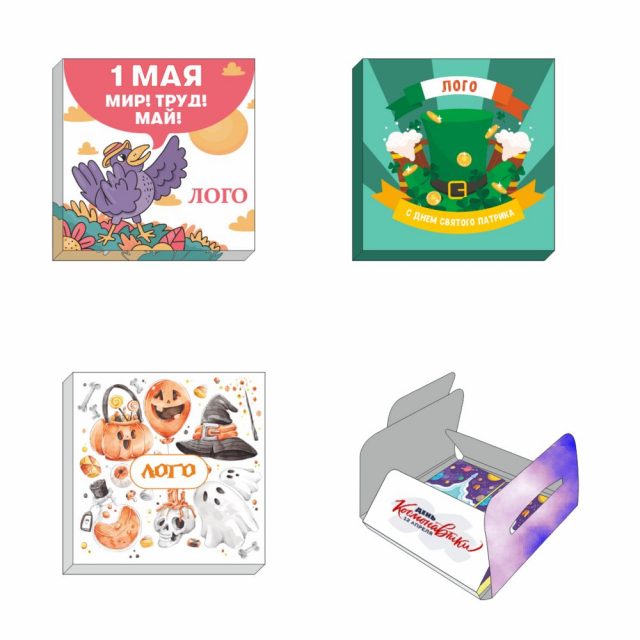 - Обертка с полноцветной печатью на каждой плитке шоколада.