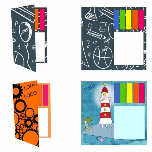 - Блок с клеевым слоем 7х7,5 см, 50 листов; пластиковые закладки 1,2х4,3 см, 5х25 листов.