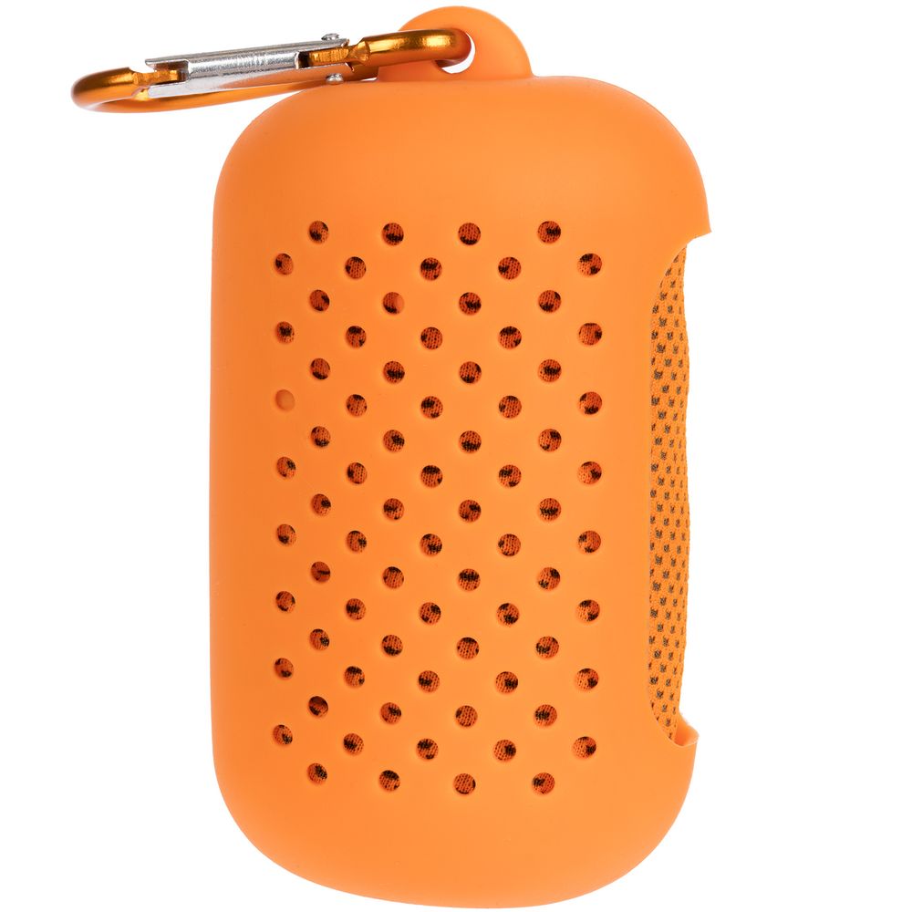 Упаковано в специальный силиконовый чехол с вентиляционными отверстиями, а при помощи карабина его можно прикрепить к рюкзаку, сумке или на пояс.