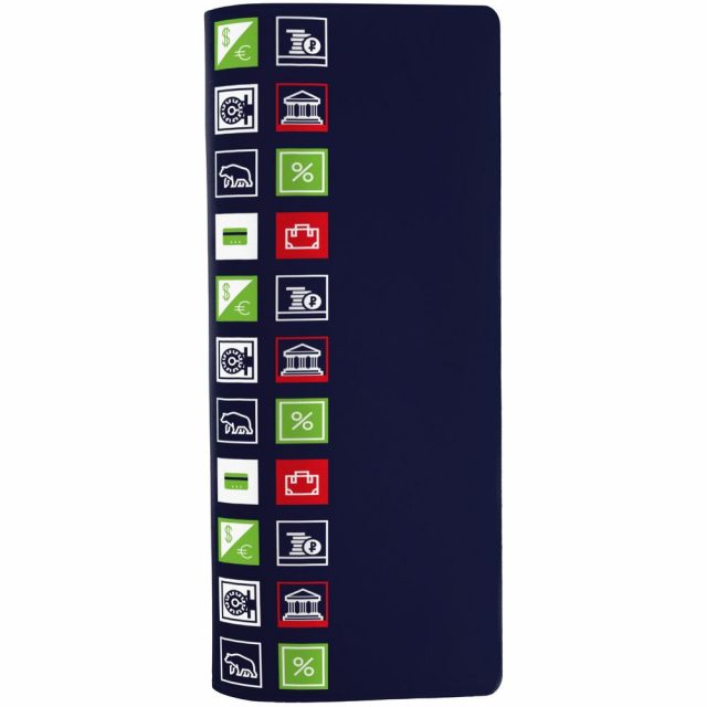 Прочный непромокаемый материал аксессуара сохранит важные документы сотрудника в деловой поездке, а минималистичный дизайн создаст особую эстетику. В каждой части общего рисунка изображены главные символы финансовой отрасли.