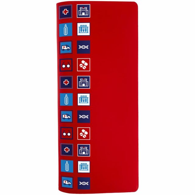 В каждой части общего рисунка изображены главные медицинские символы.Органайзер имеет 5 отделений: для билетов, паспорта, визиток или кредитных карт.