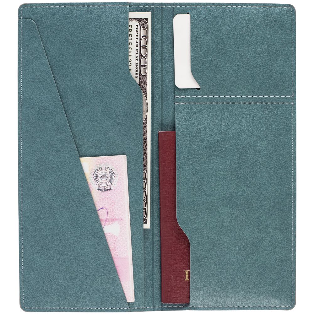 Имеет 5 отделений: для билетов, паспорта, визиток или кредитных карт.