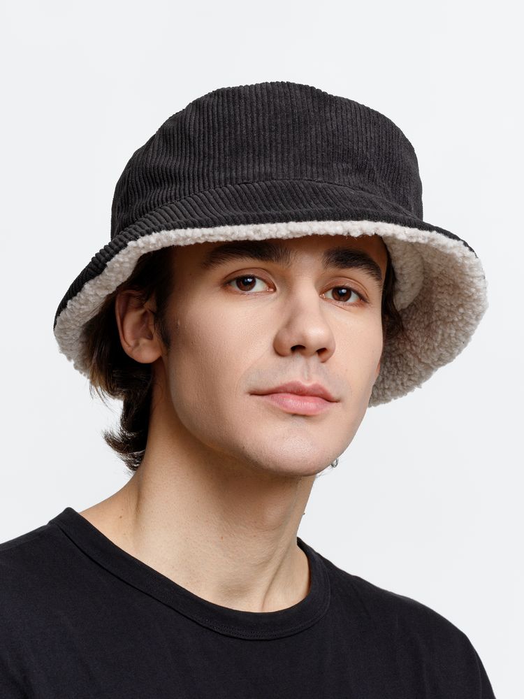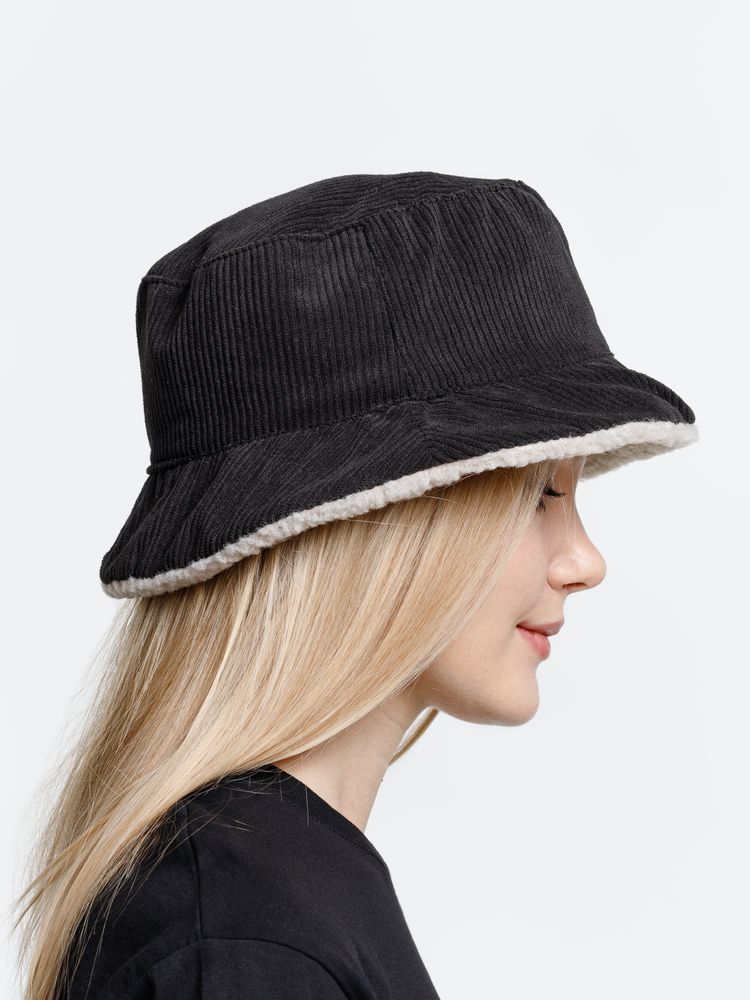 Теплая двухсторонняя панама. Одна сторона выполнена из вельвета, другая — из синтетической шерпы.