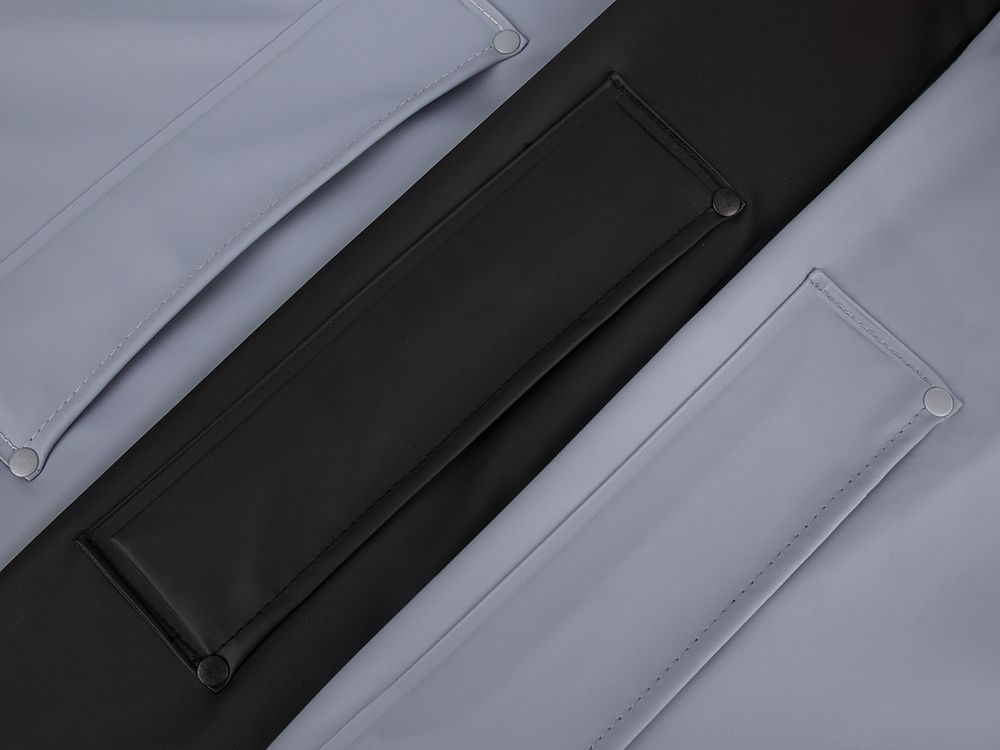 • Абсолютно водостойкие швы благодаря методу спаивания деталей кроя позволяют использовать дождевик даже в шторм