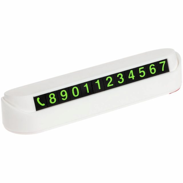 В наборе подставка с клейким основанием и комплект магнитных символов — при изменении номера телефона данные на визитке легко скорректировать.
