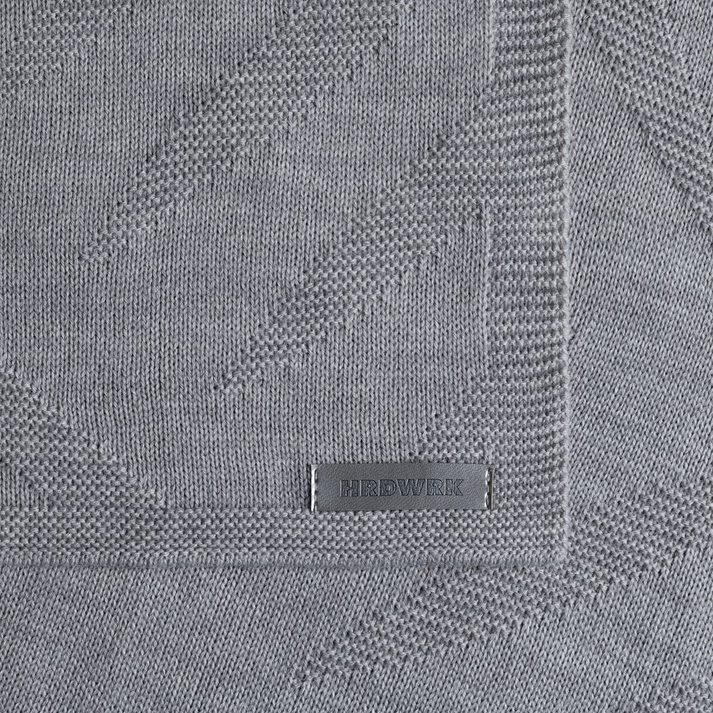 Плед с рельефным рисунком, обернут вязаной лентой.