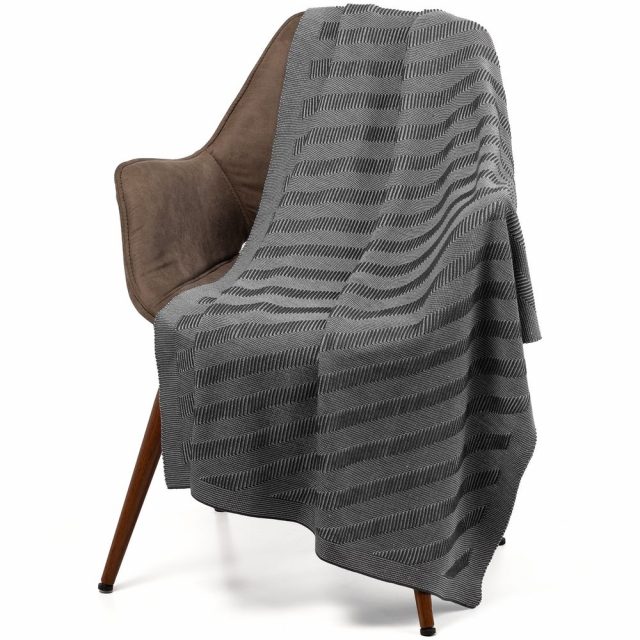 Акриловый плед в широкую полоску преобразит интерьер, сделает его теплее, комфортнее и уютнее. Рельефная фактура и насыщенные благородные оттенки: с пледом Locus Solus легко создать свое идеальное место уединения. Для перезагрузки, восстановления внутренней тишины и сохранения баланса.