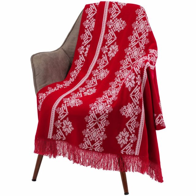 Плед с двусторонним жаккардовым узором.