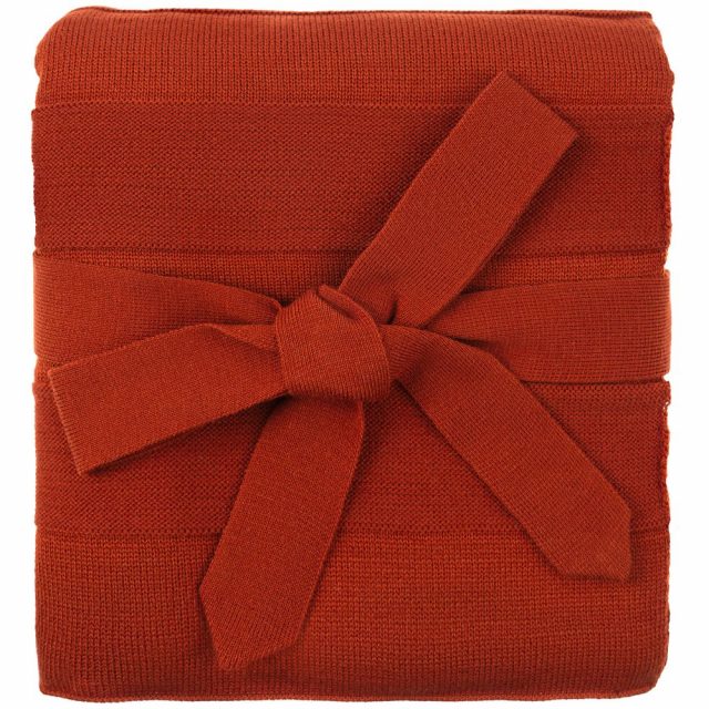 Минималистичный плед фактурной вязки из меланжевой пряжи.