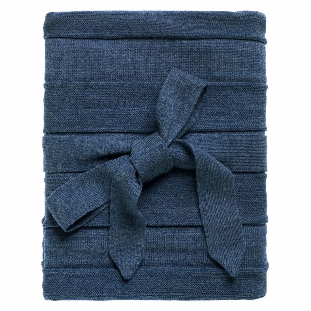 Плед перевязан декоративной вязаной лентой.