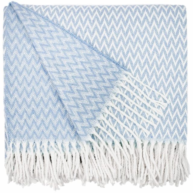Плед Sagunt с ненавязчивым зигзагообразным узором и аккуратной бахромой подарит мгновения уюта и радости, порадует своим нежным дизайном и окутает теплом.