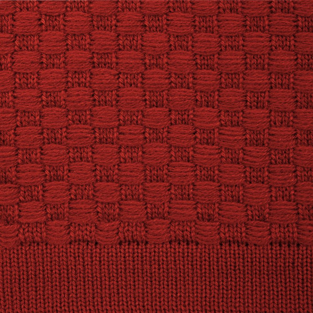 Однотонный плед рельефной вязки.