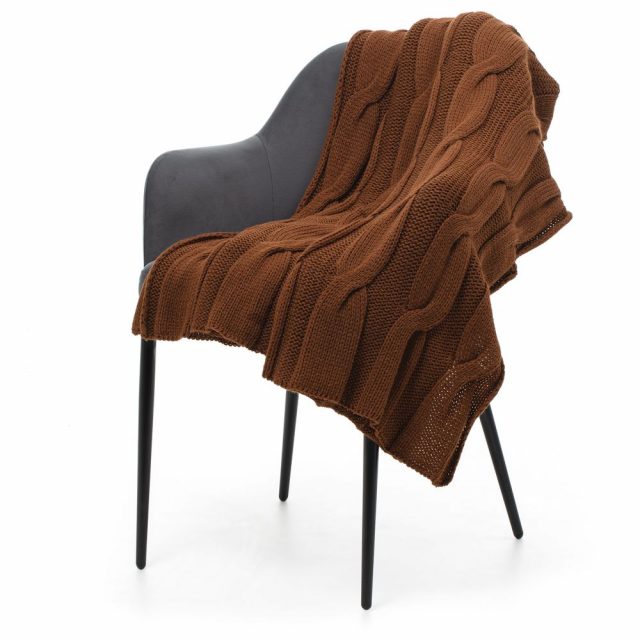 Snefald — объемный плед благородного оттенка с орнаментом из крупных кос. Классический узор придает изделию элегантный вид, изысканности добавляет и цветовая гамма.